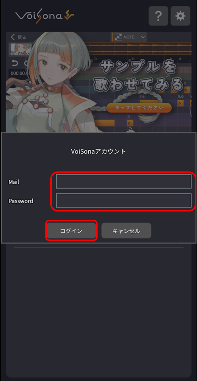 - 登録したメールアドレスとパスワードを入力し、「ログイン」をタップします。 ログインが成功すると、ログイン画面が閉じます。