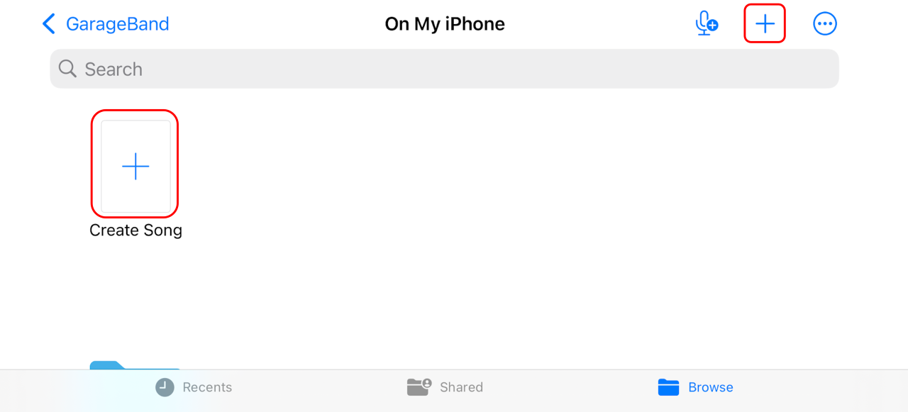 - Tap "+" (Create Song).