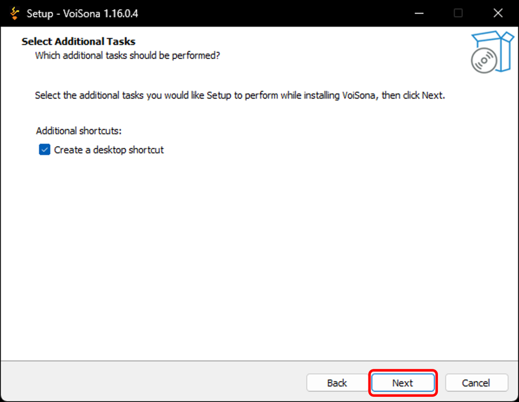 - If you want to create an icon on the desktop, check the box and click "Next".