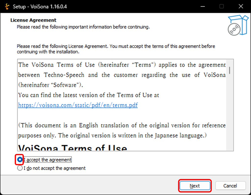 - Review the license agreement, and if you agree, check "Agree" and click "Next".