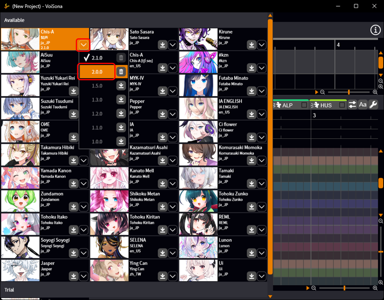 - Click the "Select Voice Version" button again to open the selection screen, and then click the version number. The score editing screen will be displayed, showing the image of the selected voice library.