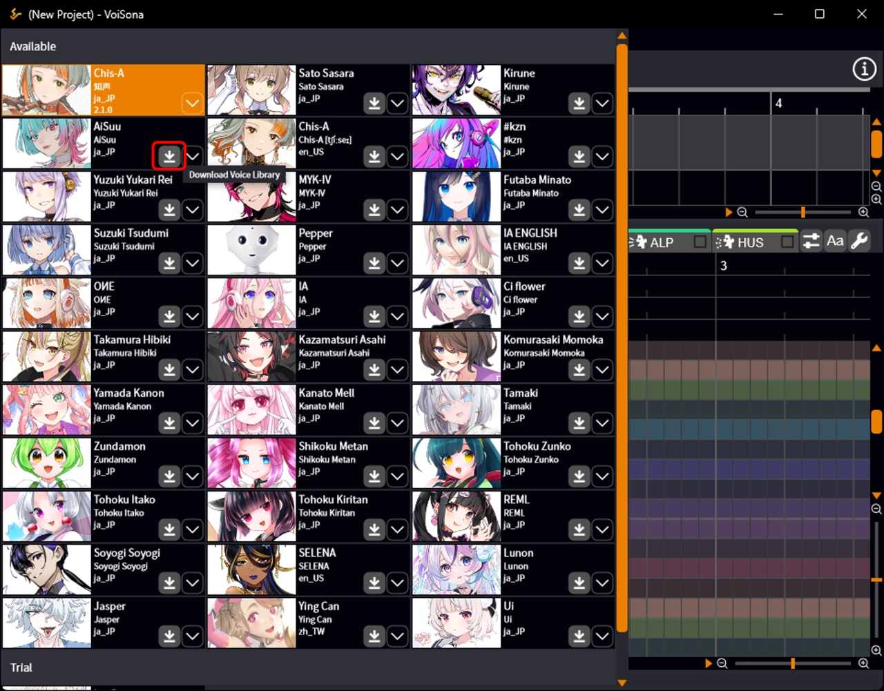 - Click the "Download Voice Library" button for the voice displayed in the "Trial" area.