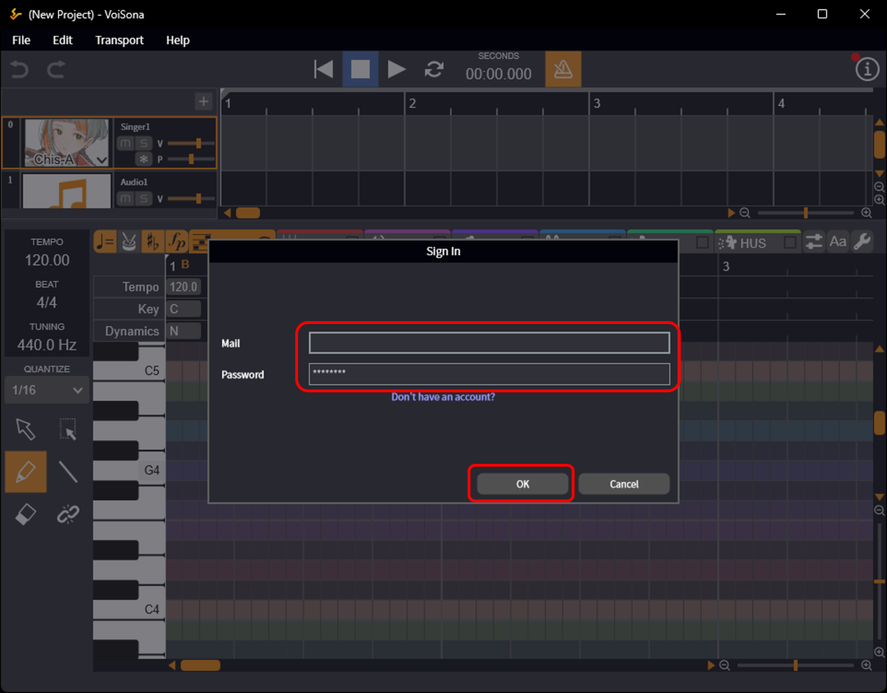 - Enter the email address and password you registered, then click "OK". Once you sign in, the sign-in screen will close.