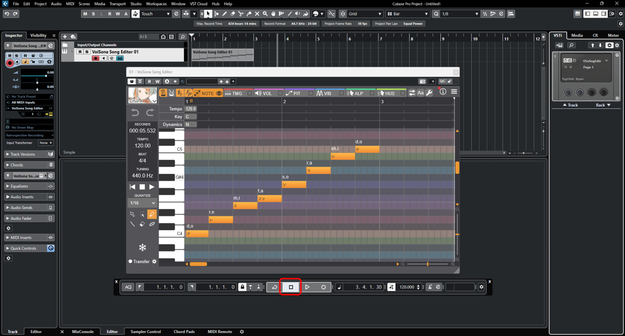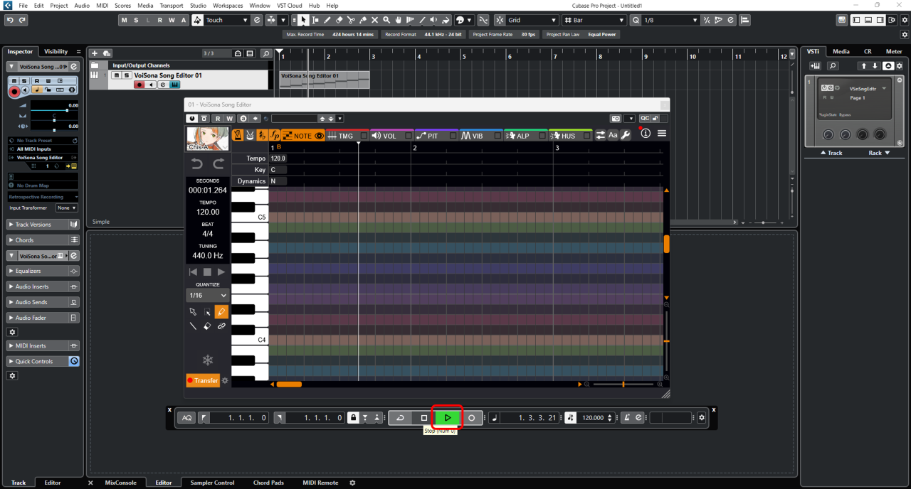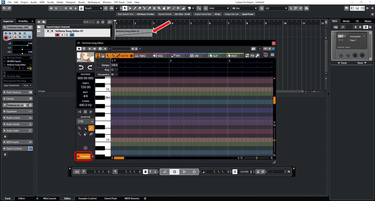 When using VoiSona as an instrument plugin, you can transfer MIDI data from your DAW into VoiSona.