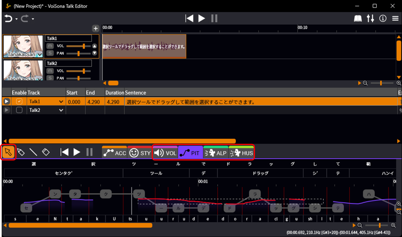 - Merge accent phrases Click when the cursor changes to a bind icon