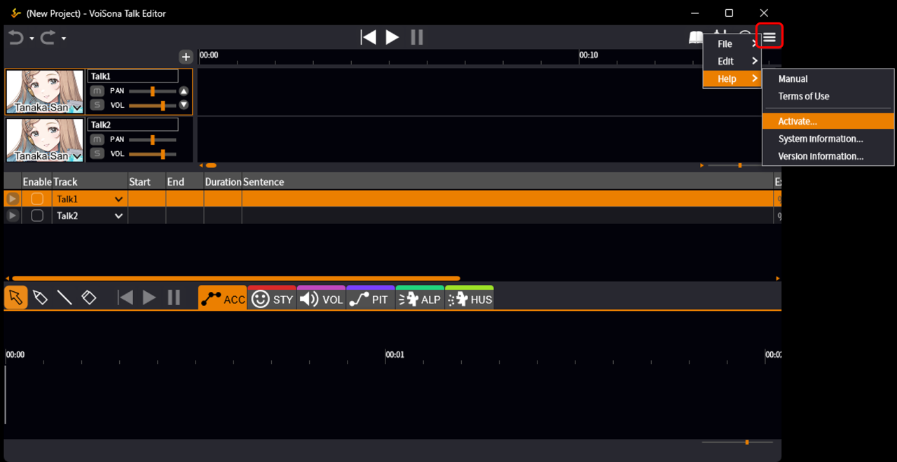 Creating Your First Talk2025/10/2 9:232026/1/4 12:32Installing VoiSona Talk2025/11/3 7:492026/1/4 12:33Performing User Activation2025/11/3 7:492026/1/4 12:33Selecting a Voice Library2025/11/3 7:492026/1/4 12:34Entering Sentences2025/11/3 7:492026/1/4 12:36Editing Sentences2025/11/3 7:492026/1/4 12:37Adjusting Parameters2025/11/3 7:492026/1/4 12:38Importing and Exporting Files2025/11/3 7:482026/1/4 12:39Changing Preferences2025/11/3 7:482026/1/4 12:40REST API Tutorial2025/11/3 7:482026/1/4 12:40Frequently Asked Questions (FAQ)2025/11/3 7:472026/1/4 12:41