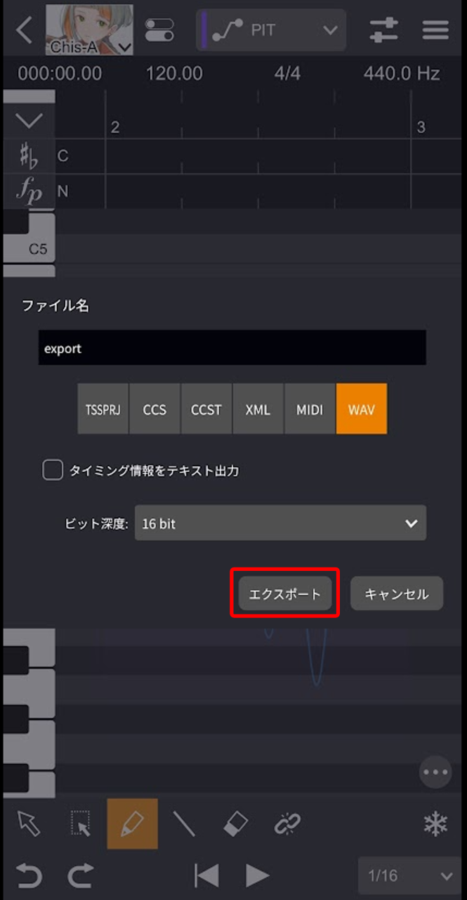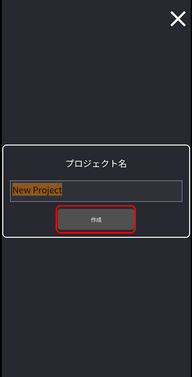 - 任意のプロジェクトファイル名を入力し、「作成」をタップします。 VoiSonaの編集画面が表示され、プロジェクトファイル(.tsmsln)が自動で保存されます。