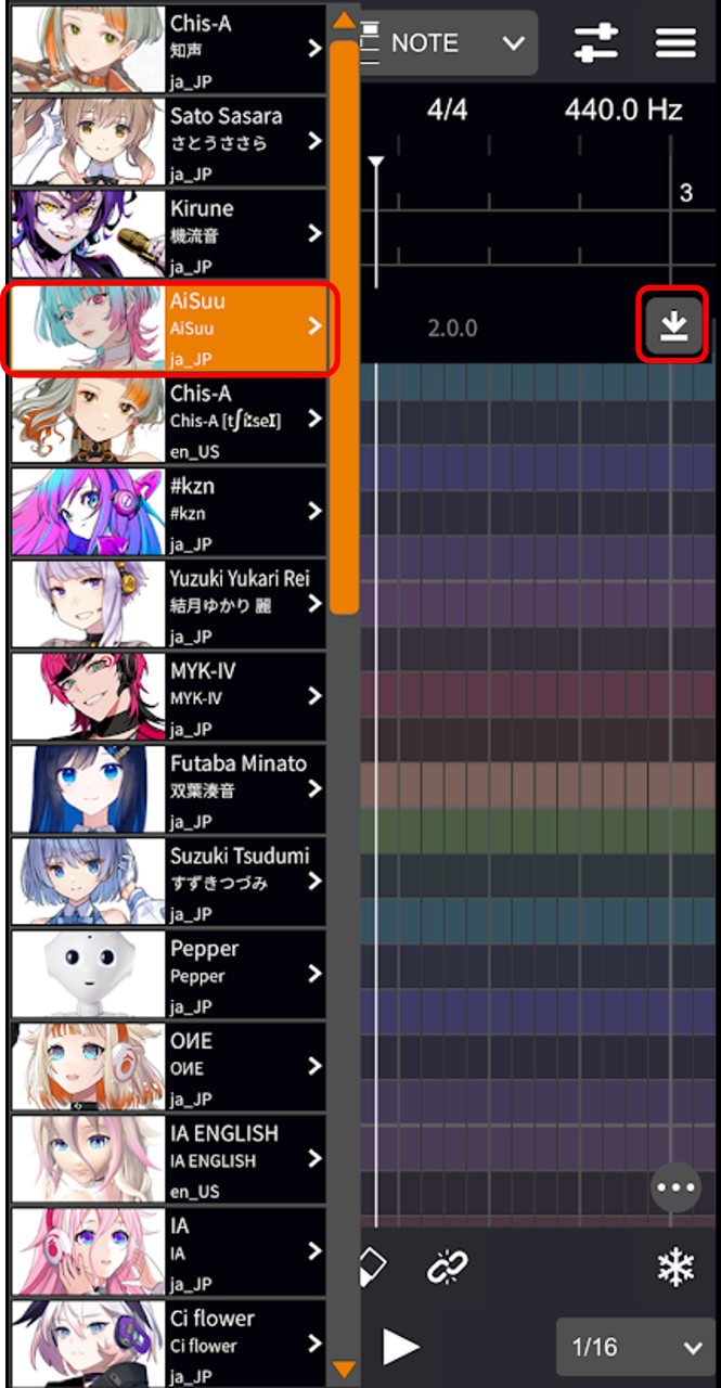 - 再度ボイスライブラリの選択画面を開き、バージョン番号をタップします。 選択したボイスライブラリの画像が表示されます。