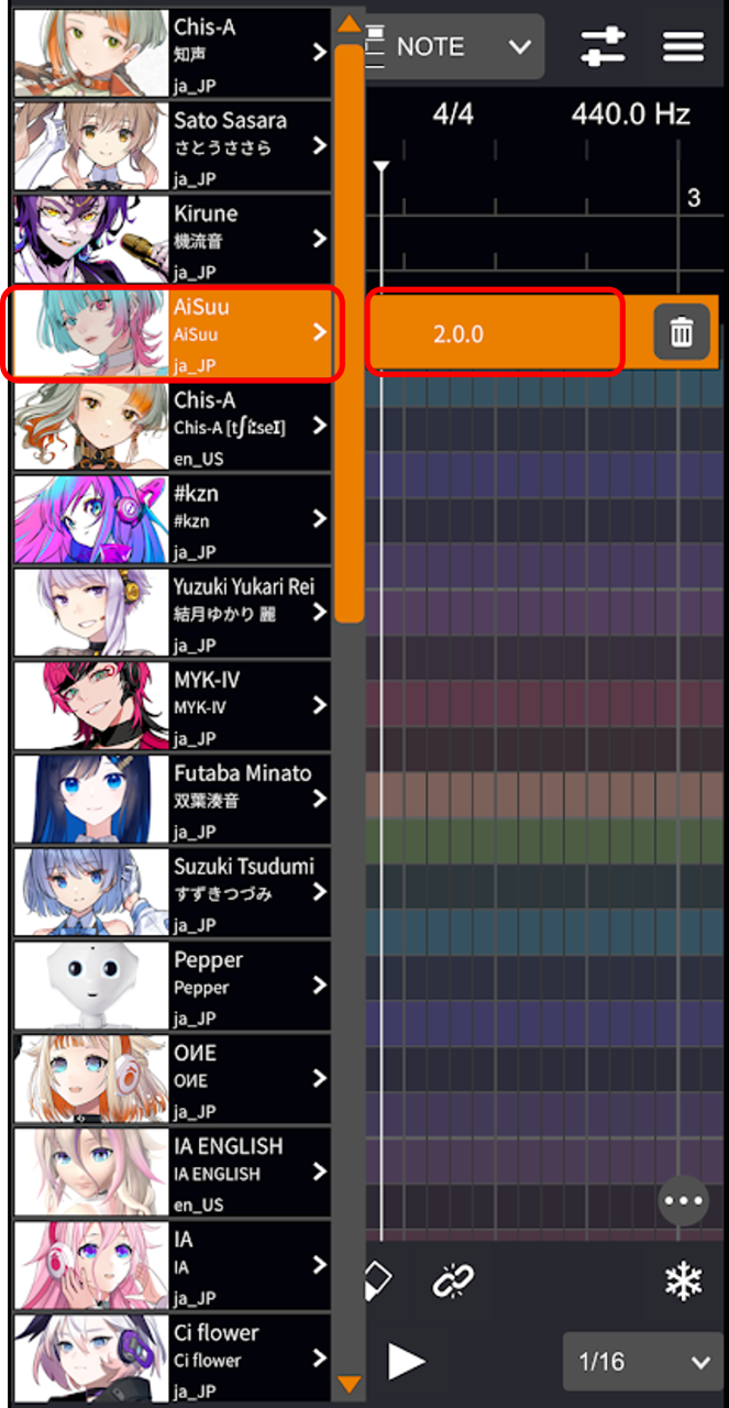 楽曲に使用する歌声を、ボイスライブラリから選ぶことができます。