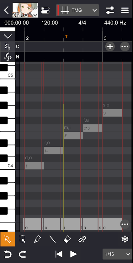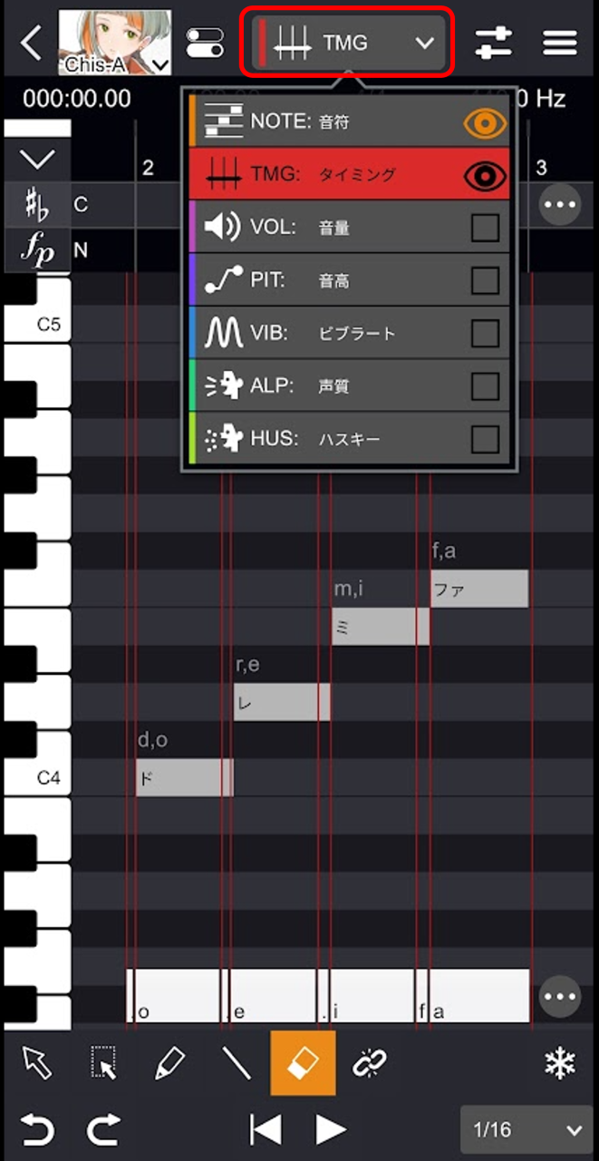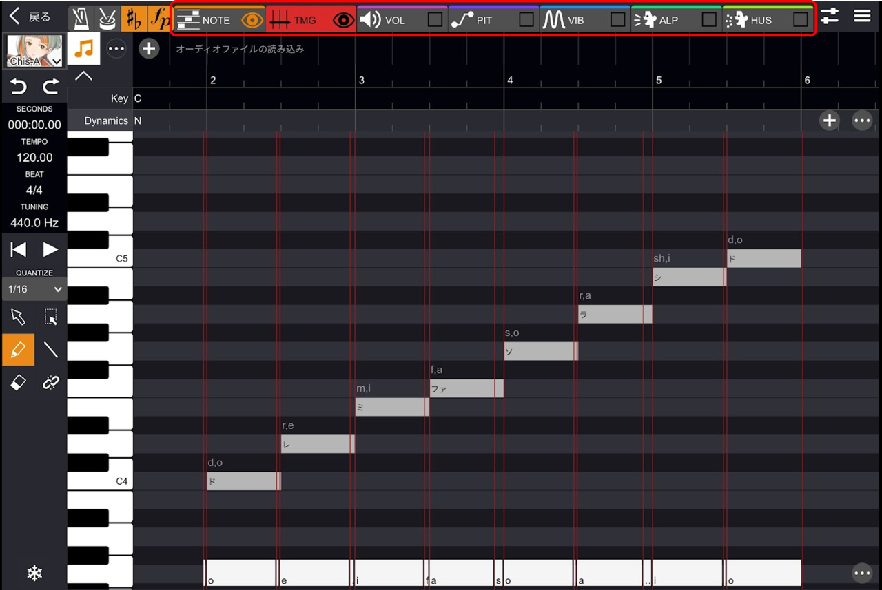 これにより、音素をさらに5つの部分に分けたラインが表示され、より細かいタイミングの調整が可能になります。
