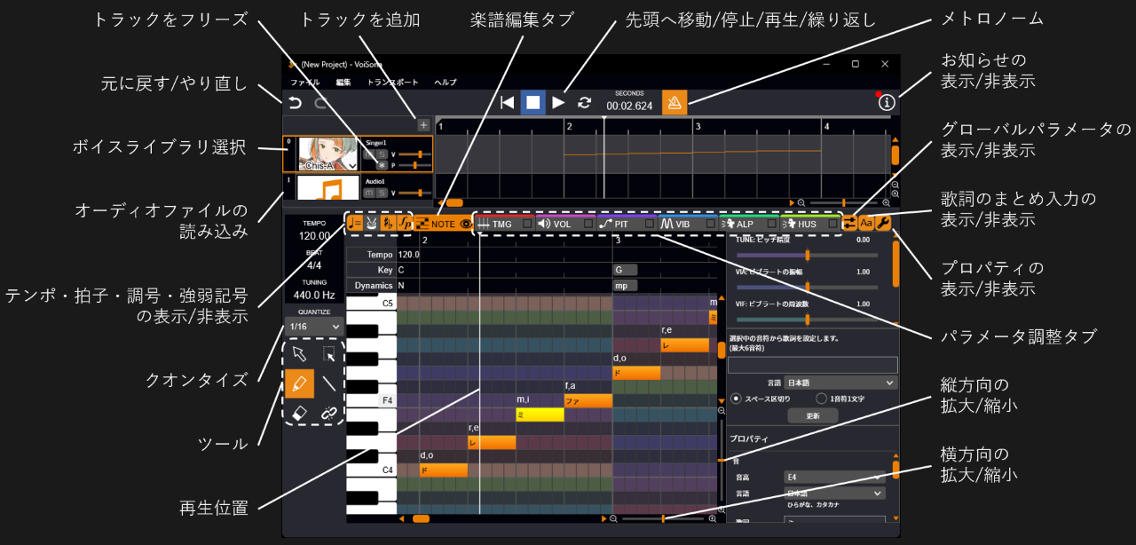 クイックスタートガイド2025/10/3 11:022026/4/3 15:34VoiSonaをインストールする2025/10/3 11:032026/1/5 10:38VoiSonaを起動する2025/11/3 10:522026/3/3 13:33ログインする2025/11/2 11:112026/4/3 6:47ボイスライブラリを選択する2025/11/2 12:022026/3/3 13:34楽譜を編集する2025/11/2 12:022026/4/2 10:50パラメータを調整する2025/11/2 12:022026/4/4 11:39ファイルをインポート・エクスポートする2025/11/2 12:022026/1/4 11:51環境設定を変更する2025/11/2 12:022026/1/4 11:52よくある質問2025/11/2 12:072026/1/4 11:52