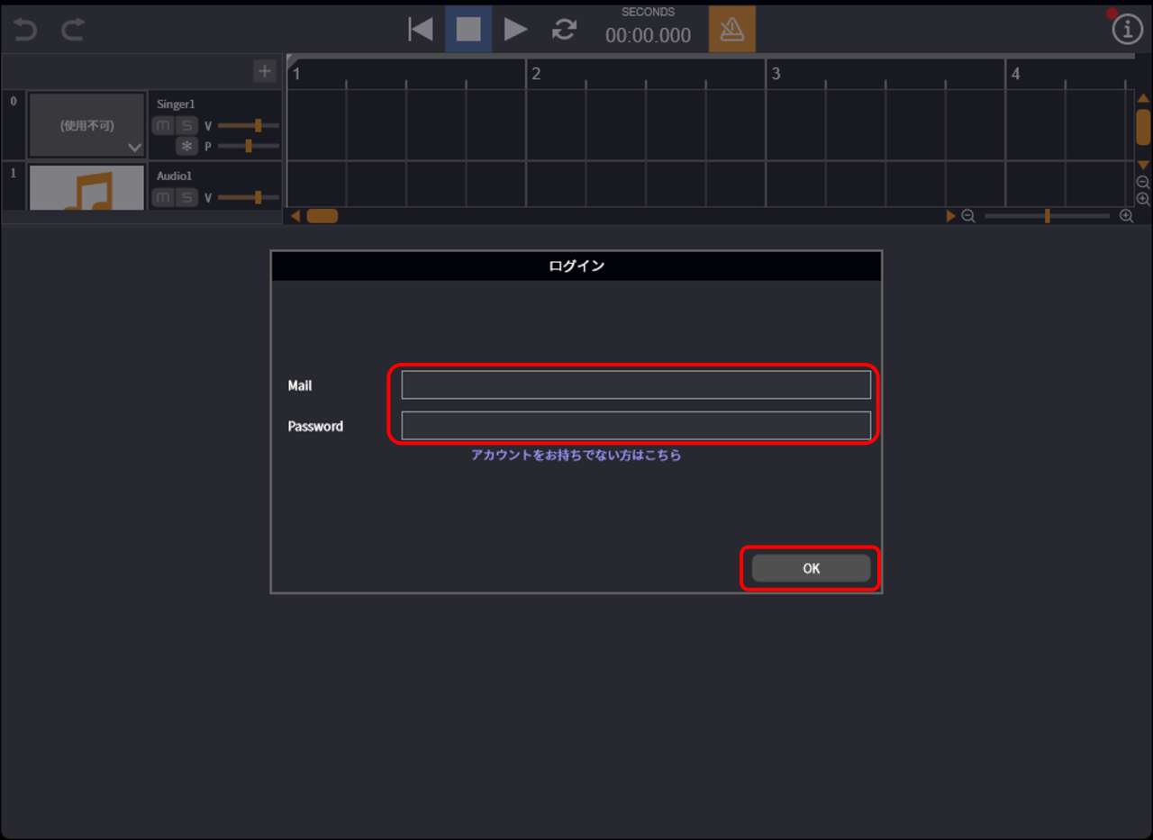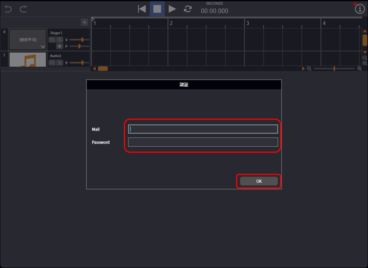 - 登録したメールアドレスとパスワードを入力し「OK」をクリックします。