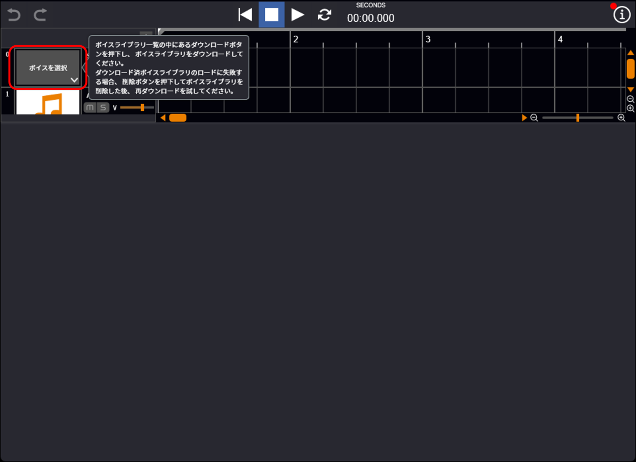 - 「ボイスライブラリをダウンロード」ボタンをクリックします。 ボイスライブラリのダウンロードが開始されます。 ダウンロードが完了すると、楽譜の編集画面が表示され、選択したボイスライブラリの画像が表示されます。