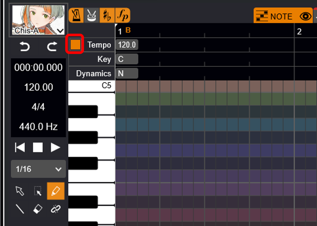 切り替えるには、Tempoの左側にある四角をクリックしてください。