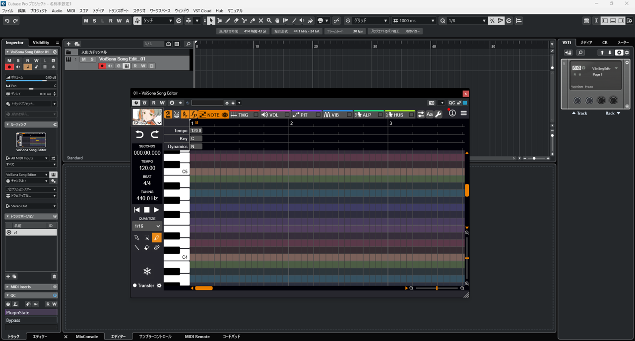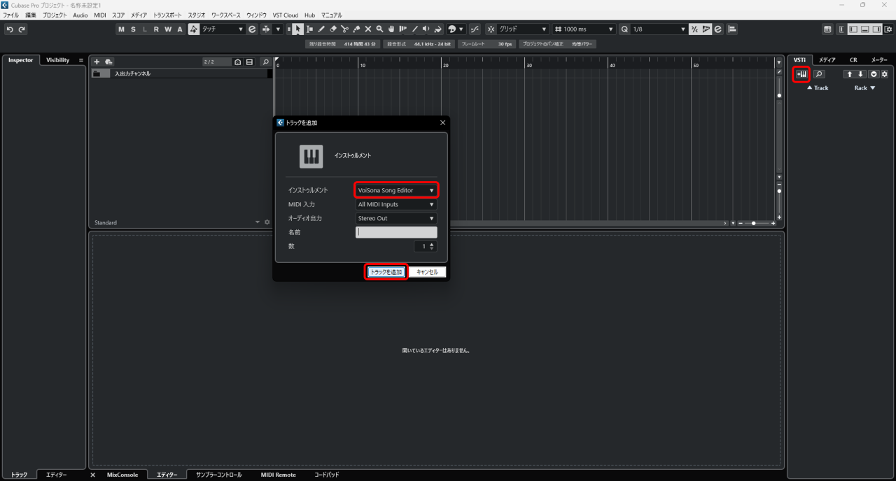 - 「VoiSona Song Editor」を選択し「トラック追加」をクリックします。 VoiSonaの編集画面が表示されます。