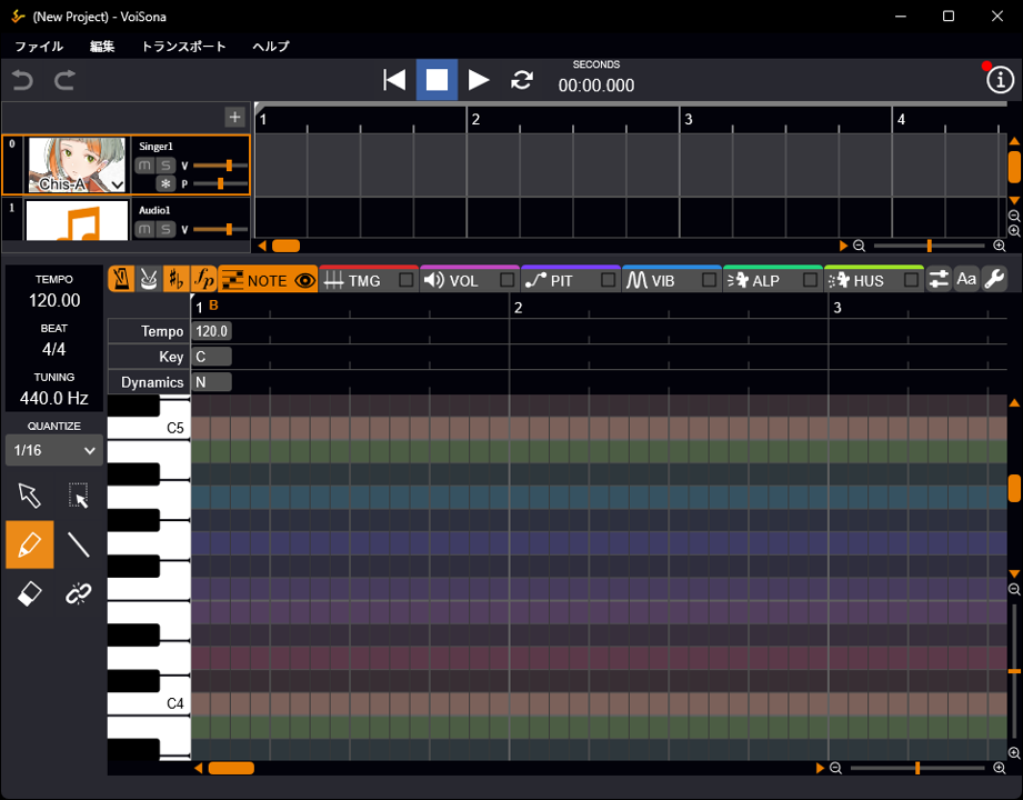 - VoiSonaのアプリを起動します。 新規プロジェクトが作成されます。