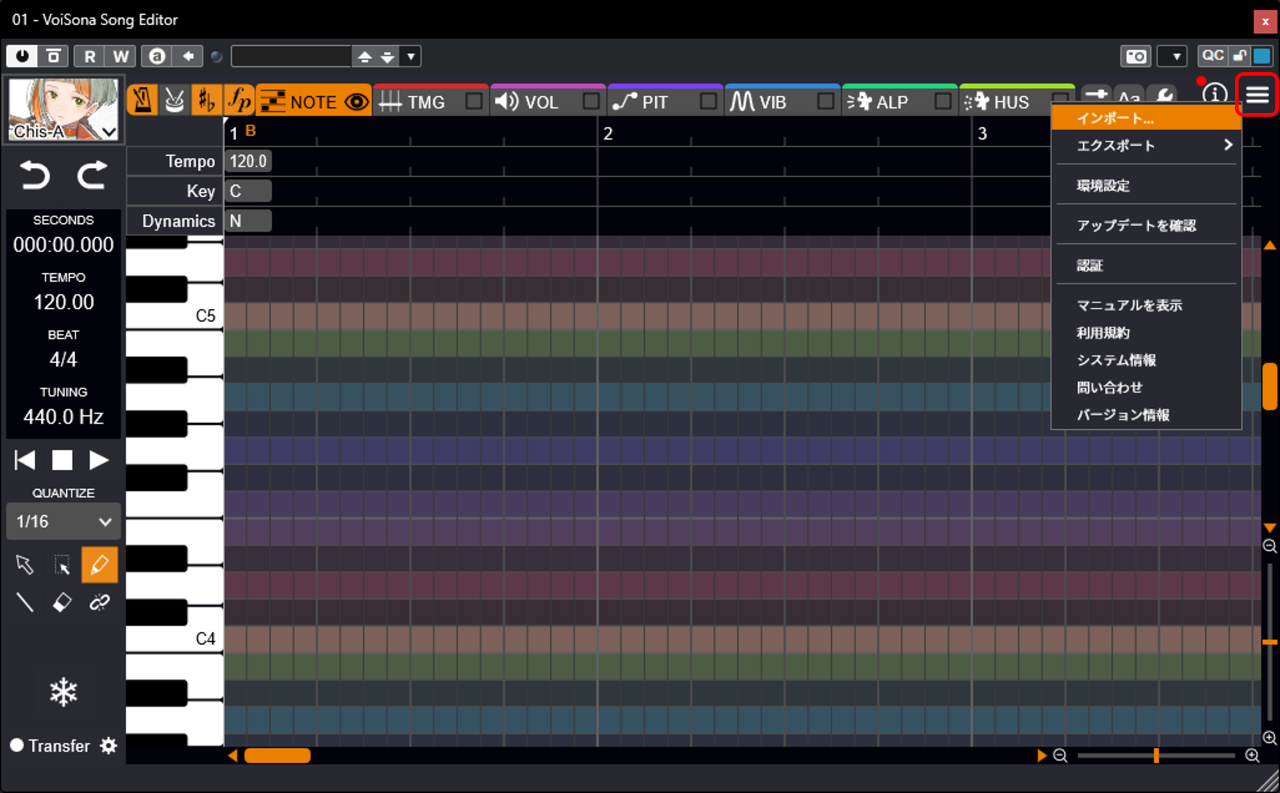 はじめてのソング作成2025/10/3 11:022026/1/4 11:38VoiSonaをインストールする2025/10/3 11:032026/1/4 11:41VoiSonaを起動する2025/11/3 10:522026/1/4 11:42ユーザー認証をする2025/11/2 11:112026/1/4 11:44ボイスライブラリを選択する2025/11/2 12:022026/1/4 11:46楽譜を編集する2025/11/2 12:022026/1/4 11:47パラメータを調整する2025/11/2 12:022026/1/4 11:49ファイルをインポート・エクスポートする2025/11/2 12:022026/1/4 11:51環境設定を変更する2025/11/2 12:022026/1/4 11:52よくある質問2025/11/2 12:072026/1/4 11:52