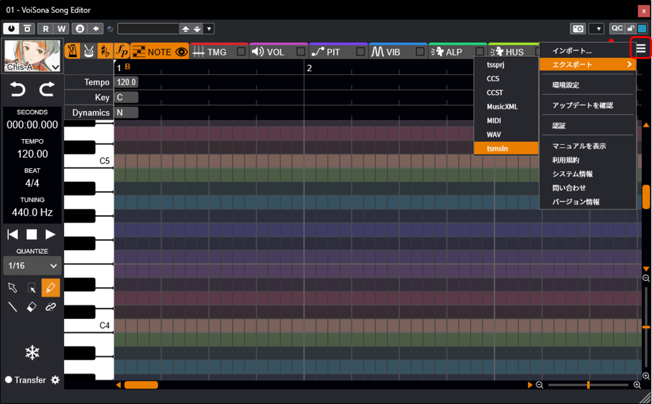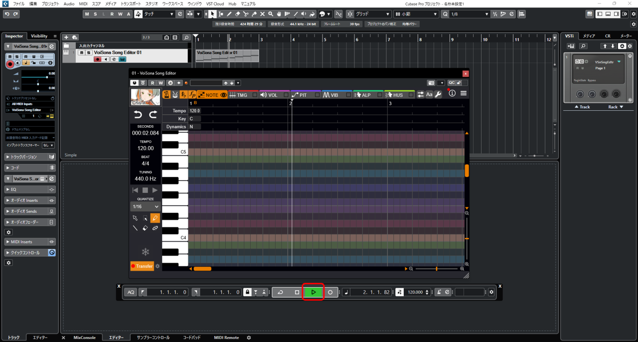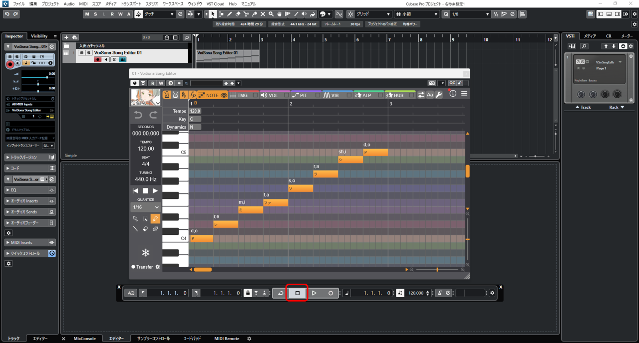 再生した区間のMIDI情報のみがVoiSonaに反映されます。