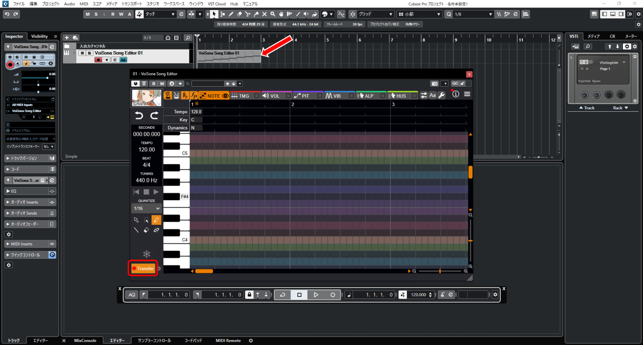- VoiSonaの編集画面で「Transfer」ボタンをONにします。