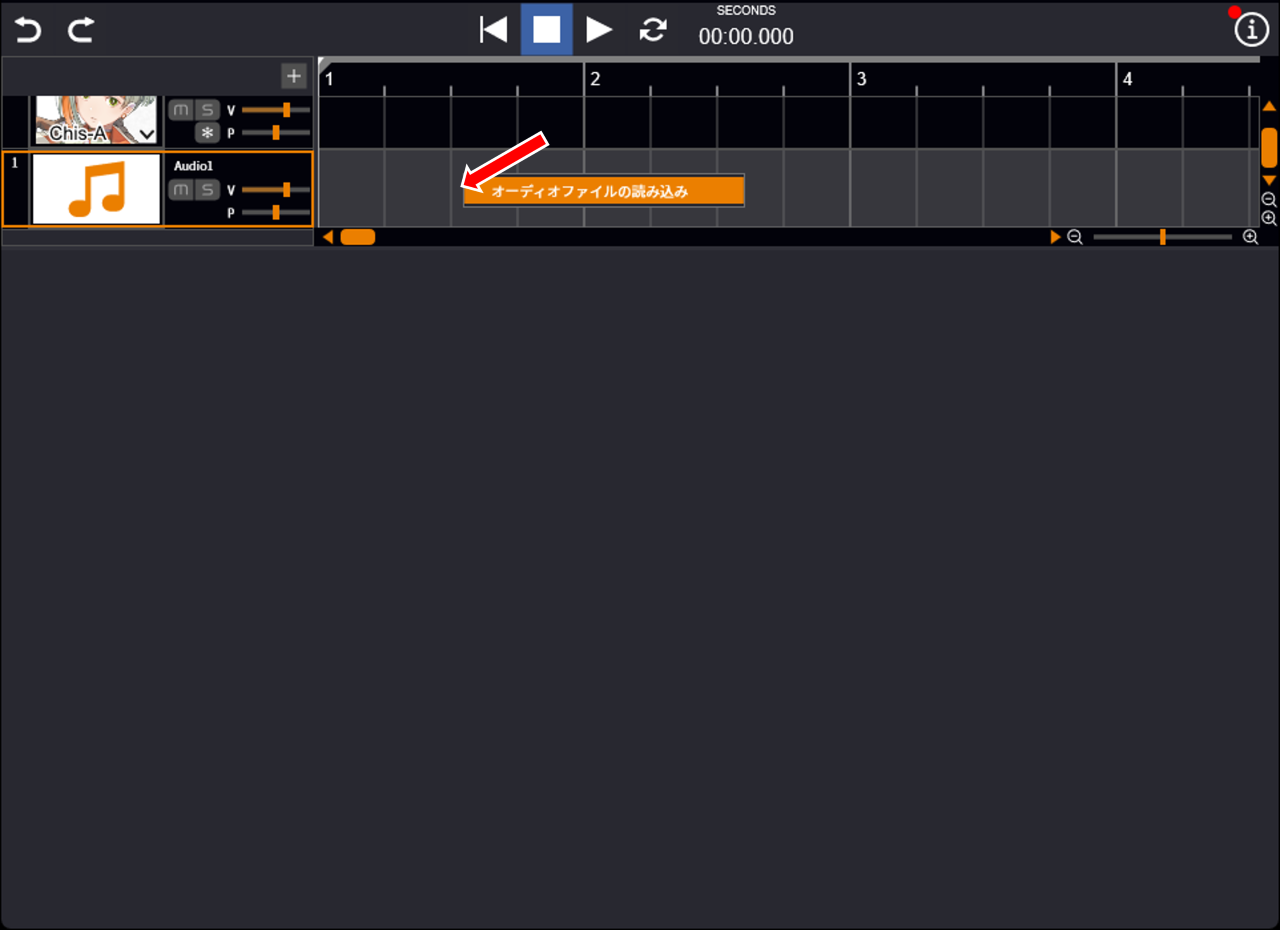 - オーディオトラックのタイムライン上で右クリックし、「オーディオファイルの読み込み」をクリックします。