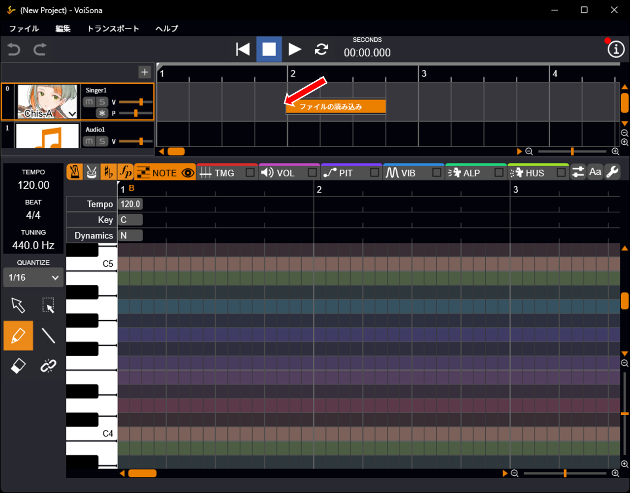 スタンドアロンでは、選択中のトラックまたは新規トラックにファイルをインポートし、エディタ上で編集・再生できます。