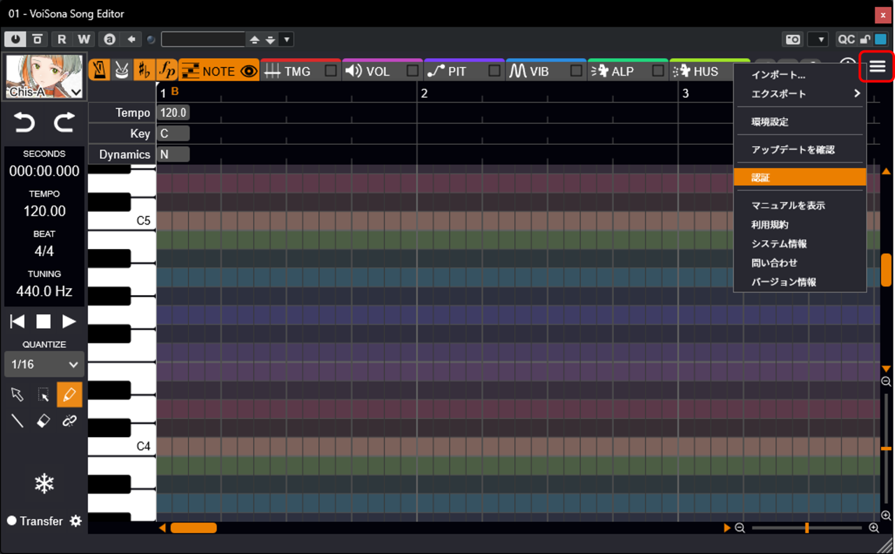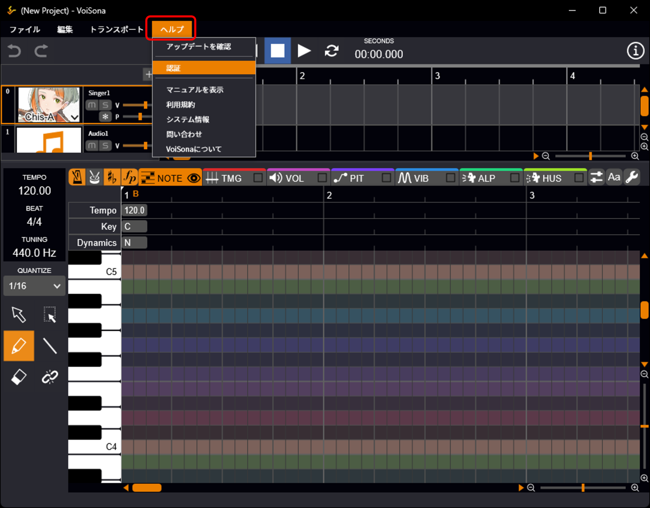 はじめてのソング作成2025/10/3 11:022026/1/4 11:38VoiSonaをインストールする2025/10/3 11:032026/1/4 11:41VoiSonaを起動する2025/11/3 10:522026/1/4 11:42ユーザー認証をする2025/11/2 11:112026/1/4 11:44ボイスライブラリを選択する2025/11/2 12:022026/1/4 11:46楽譜を編集する2025/11/2 12:022026/1/4 11:47パラメータを調整する2025/11/2 12:022026/1/4 11:49ファイルをインポート・エクスポートする2025/11/2 12:022026/1/4 11:51環境設定を変更する2025/11/2 12:022026/1/4 11:52よくある質問2025/11/2 12:072026/1/4 11:52