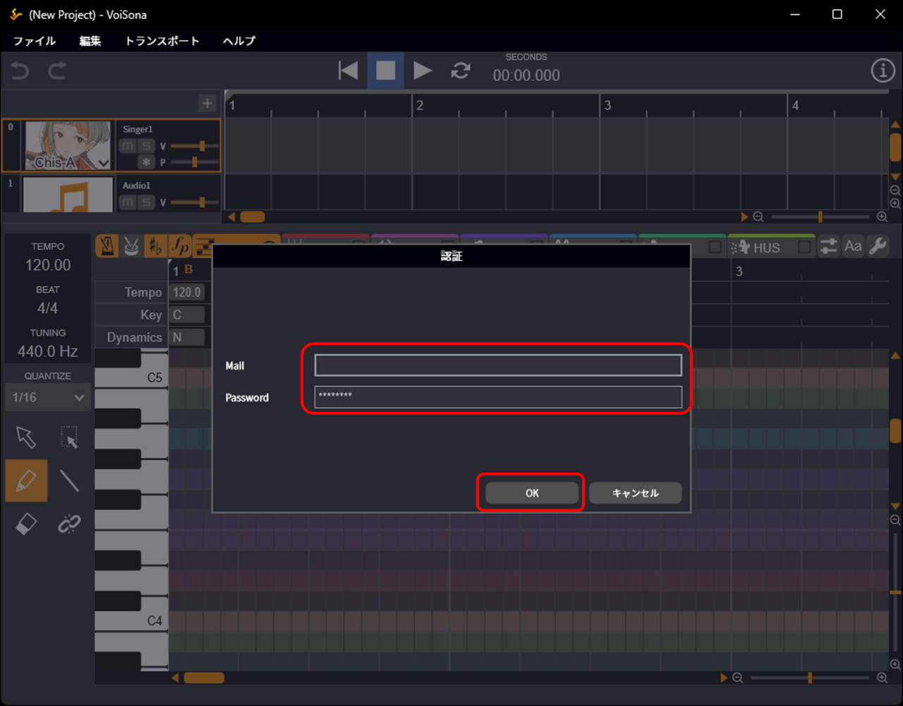 VoiSona(PC版)を使用するにはユーザー認証が必要です。