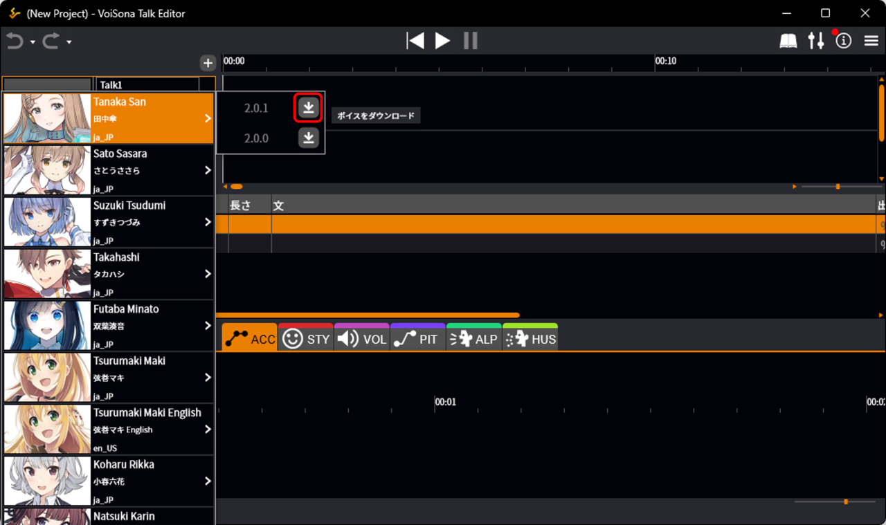 - 使用したいボイスライブラリの「ボイスをダウンロード」ボタンをクリックします。 ダウンロードが完了すると、ボイスライブラリの画像が表示されます。