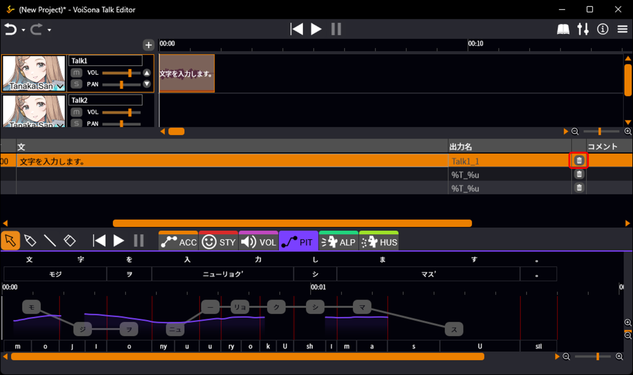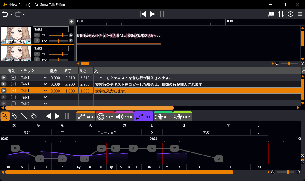 VoiSona Talkでは、セリフを簡単に追加したり自由に配置することができます。