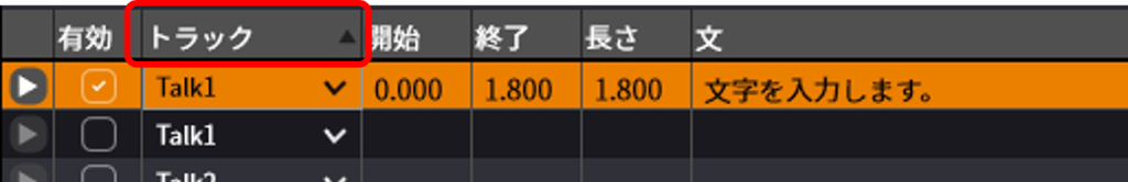 入力した文の開始時間を変更したり、別のトラックに移動することができます。