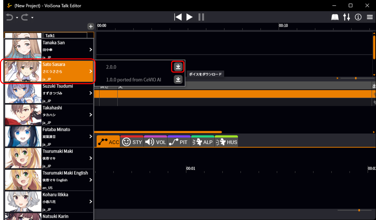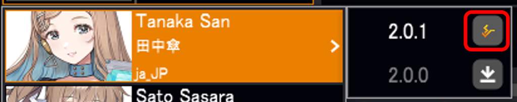 - 使用したいバージョンの「ボイスをダウンロード」ボタンをクリックします。 ボイスライブラリのダウンロードが開始されます。 ダウンロードが完了すると、ボイスライブラリの選択画面が閉じます。