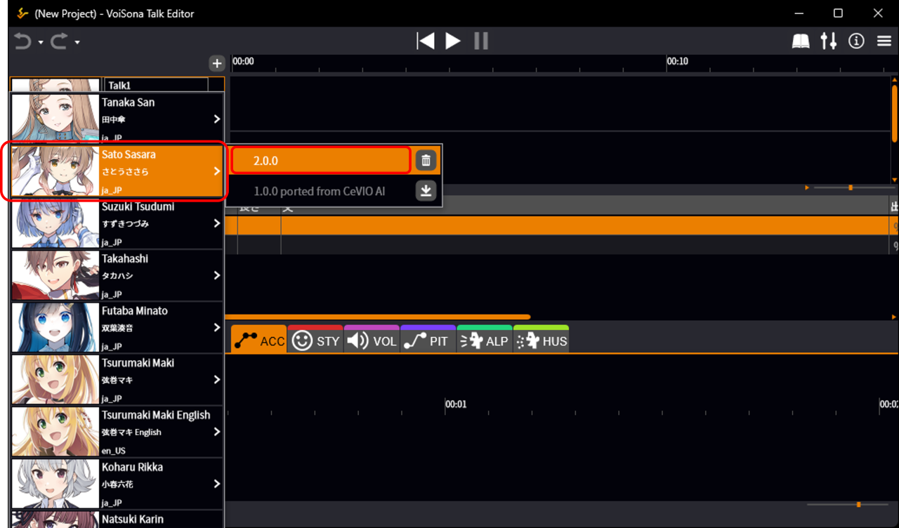 - 使用したいボイスライブラリにカーソルを合わせます。