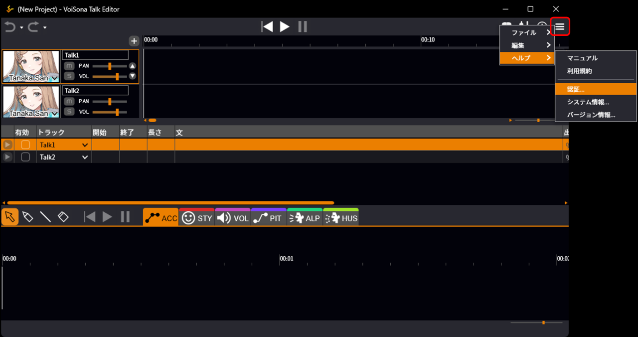 はじめてのトーク作成2025/10/2 9:212026/1/4 12:32VoiSona Talkをインストールする2025/11/3 7:242026/1/4 12:33ユーザー認証をする2025/11/3 7:242026/1/4 12:34ボイスライブラリを選択する2025/11/3 7:242026/1/4 12:34セリフを入力する2025/11/3 7:242026/1/4 12:36セリフを編集する2025/11/3 7:242026/1/4 12:37パラメータを調整する2025/11/3 7:242026/1/4 12:38ファイルをインポート・エクスポートする2025/11/3 7:242026/1/4 12:39環境設定を変更する2025/11/3 7:472026/1/4 12:39REST API チュートリアル2025/11/3 7:472026/1/4 12:40よくある質問2025/11/3 7:472026/1/4 12:41